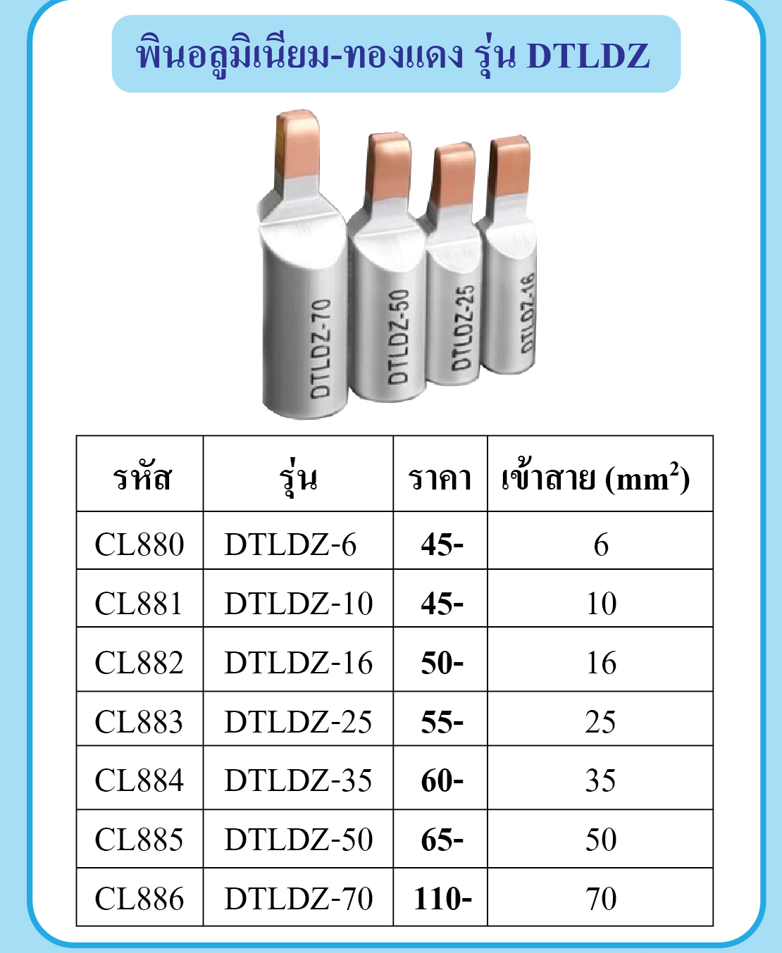 SHINOHAWA : สลิปอลุมิเนียมทองแดง, พินอลูมิเนียมทองแดง-รุ่น-DTLDZ